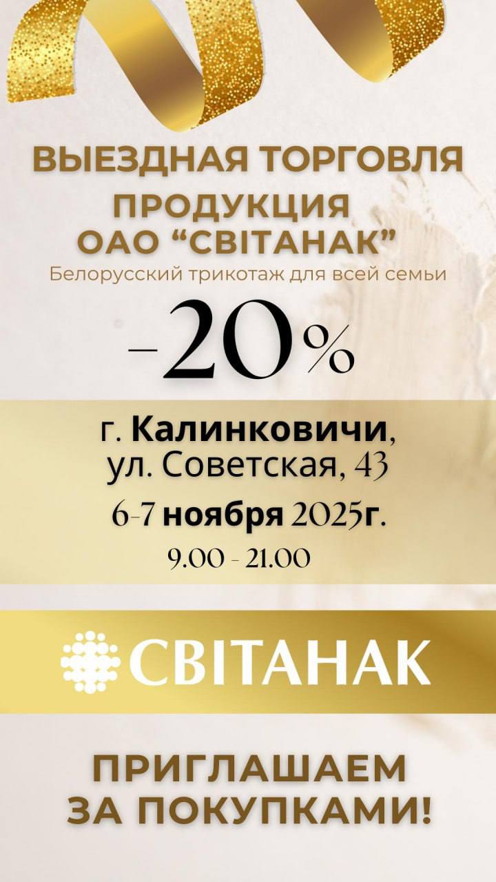 Уважаемые калинковичане! Приглашаем на выставку-продажу изделий ОАО "Світанак".6 - 7 ноября будет проходить выставка-продажа трикотажа для всей семьи от ведущего производителя ОАО "Світанак". ...