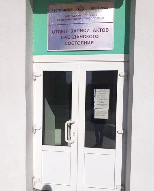 ЗАГС КалинковичиОтдел ЗАГС Калинковичского райисполкома Начальник: Адрес: Телефон: Время работы: вторник, четверг, пятница с 8.00 до 17.00 среда с 11.00 до 20.00 суббота с 8.30 до 16.30 (без перерыва) Выходной: воскресенье, понедельник